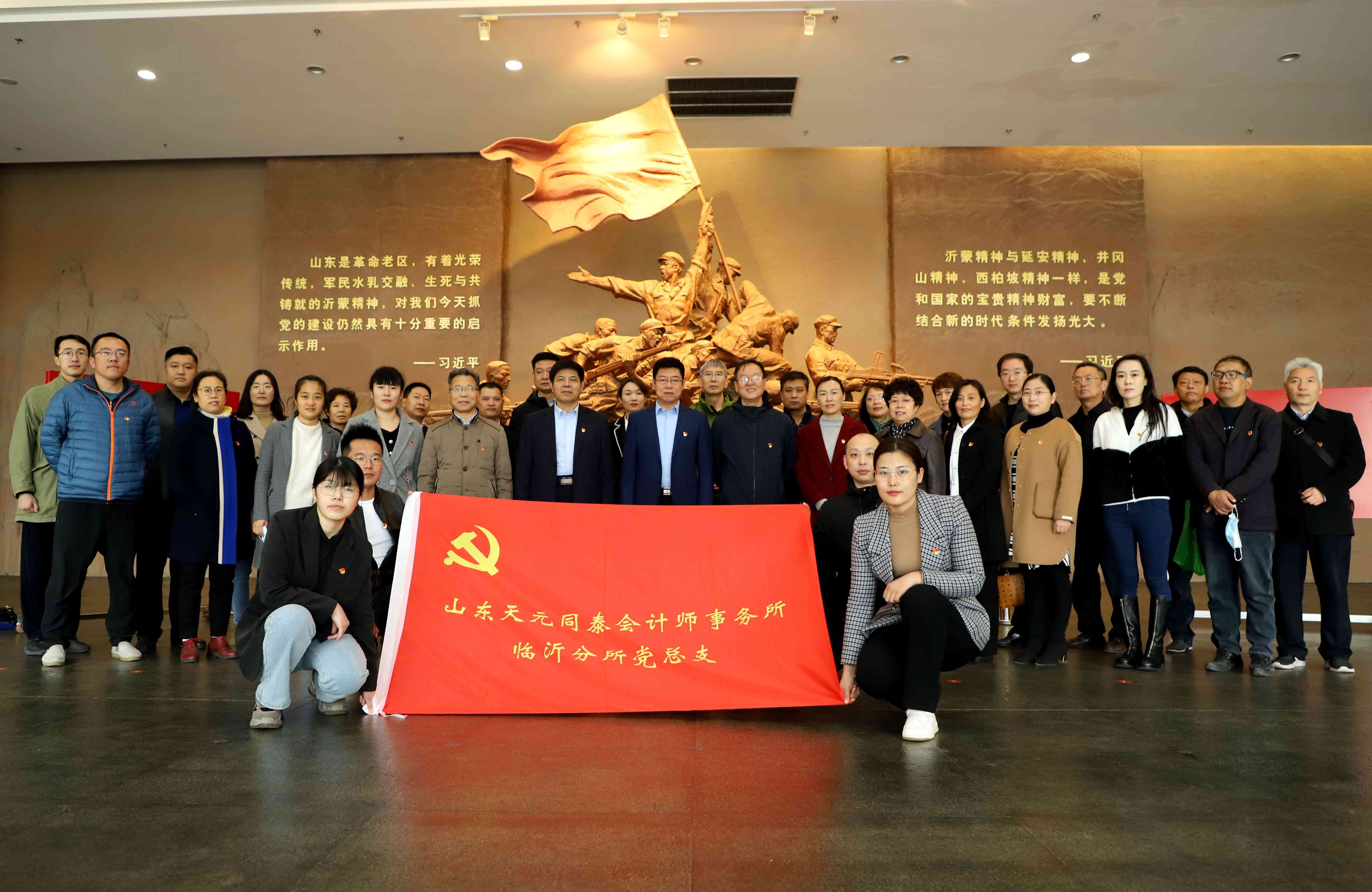 為深切緬懷革命先烈,傳承紅色基因,加強黨員黨性體驗和政治忠誠教育,2021年4月1日,山東天元同泰會計師事務(wù)所臨沂分所黨總支組織40余名黨員赴華東革命烈士陵園參加市注冊會計師行業(yè)黨委組織的“學(xué)黨史 憶英烈 守初心 當(dāng)先鋒”清明黨性教育活動。 在革命烈士紀(jì)念塔前,黨員們集體向革命烈士紀(jì)念塔敬獻(xiàn)花籃,向烈士默哀,重溫入黨誓詞,深情緬懷革命先烈。隨后天元同泰黨總支組織黨員瞻仰和學(xué)習(xí)了“仰風(fēng)承志亭”、丁秋生、常恩多、劉炎烈士墓和沂蒙革命紀(jì)念館。 一段段水與火的革命歷程,一個個動人心弦的先烈故事,一幅幅感人至深的紅色沂蒙畫卷,使大家思想受到了震撼,心靈得到了洗禮。黨員們深切感受到黨和人民軍隊與沂蒙人民鑄就的水乳交融、生死與共的歷程,為共產(chǎn)黨人浴血奮戰(zhàn)、老區(qū)人民破家支前的感人事跡而感動,更為新時代沂蒙人民開拓奮進(jìn)、家鄉(xiāng)發(fā)生巨變而深深震撼。廣大黨員干部紛紛表示要繼承先烈遺志,傳承紅色基因,弘揚愛國精神,不忘初心和使命,凝聚奮進(jìn)力量立足本職工作,充分發(fā)揮共產(chǎn)黨員先鋒模范作用,和全體同泰人一起用實際行動和優(yōu)異的成績向建黨100周年獻(xiàn)禮。
