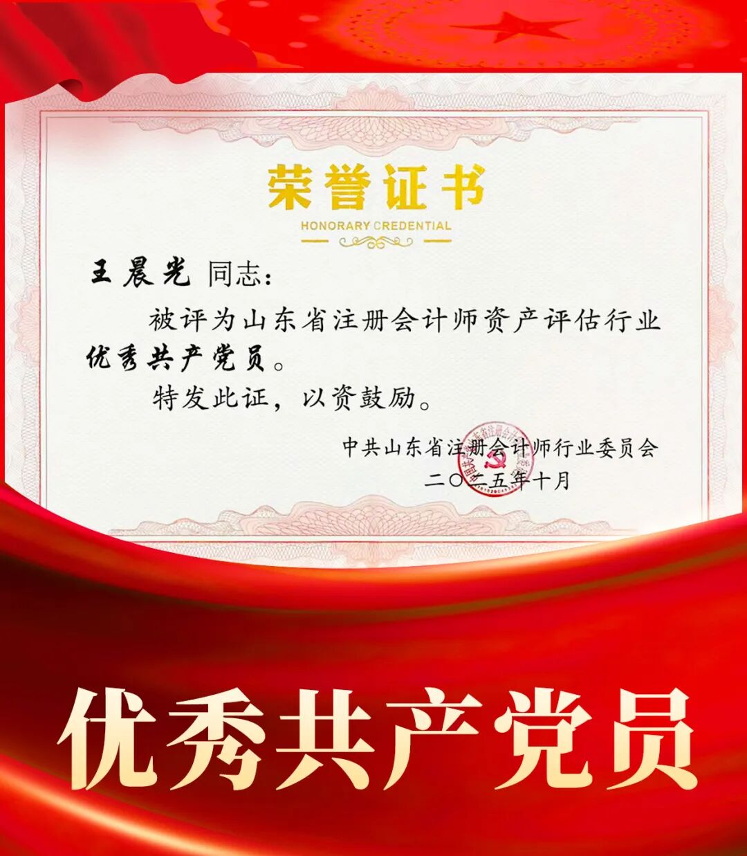 | 喜報|祝賀王晨光同志榮獲山東省注冊會計師資產(chǎn)評估行業(yè)“優(yōu)秀共產(chǎn)黨員”稱號 |