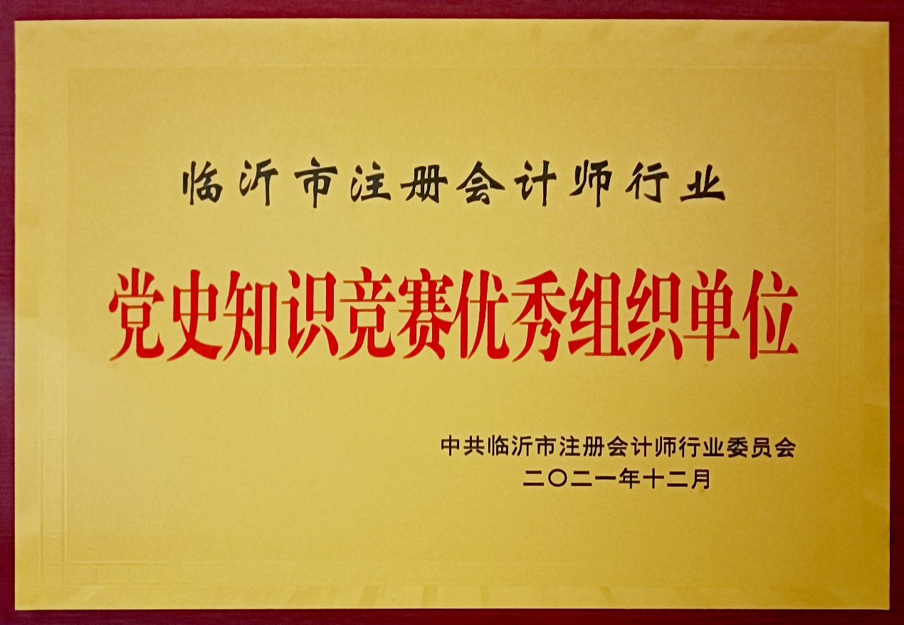 近日,臨沂市注冊會計(jì)師行業(yè)黨委表彰了部分行業(yè)黨組織,山東同泰管理咨詢集團(tuán)黨總支被授予“臨沂市注冊會計(jì)師行業(yè)先進(jìn)基層黨組織”和“臨沂市注冊會計(jì)師行業(yè)黨史知識競賽優(yōu)秀組織單位”的稱號。