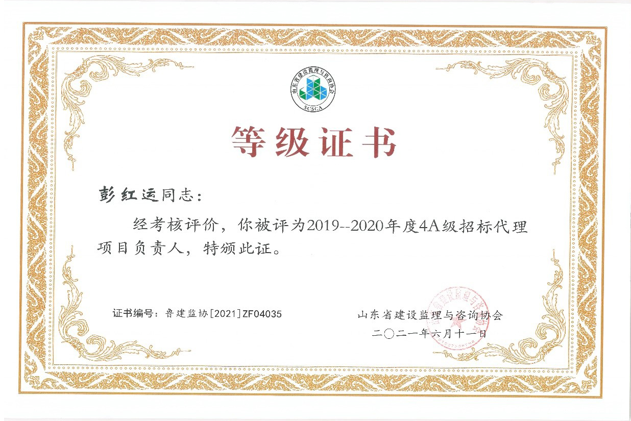 | 我公司獲得山東省首批5A級監(jiān)理企業(yè)、5A級招標(biāo)代理機構(gòu)、4A級全過程工程咨詢單位 |