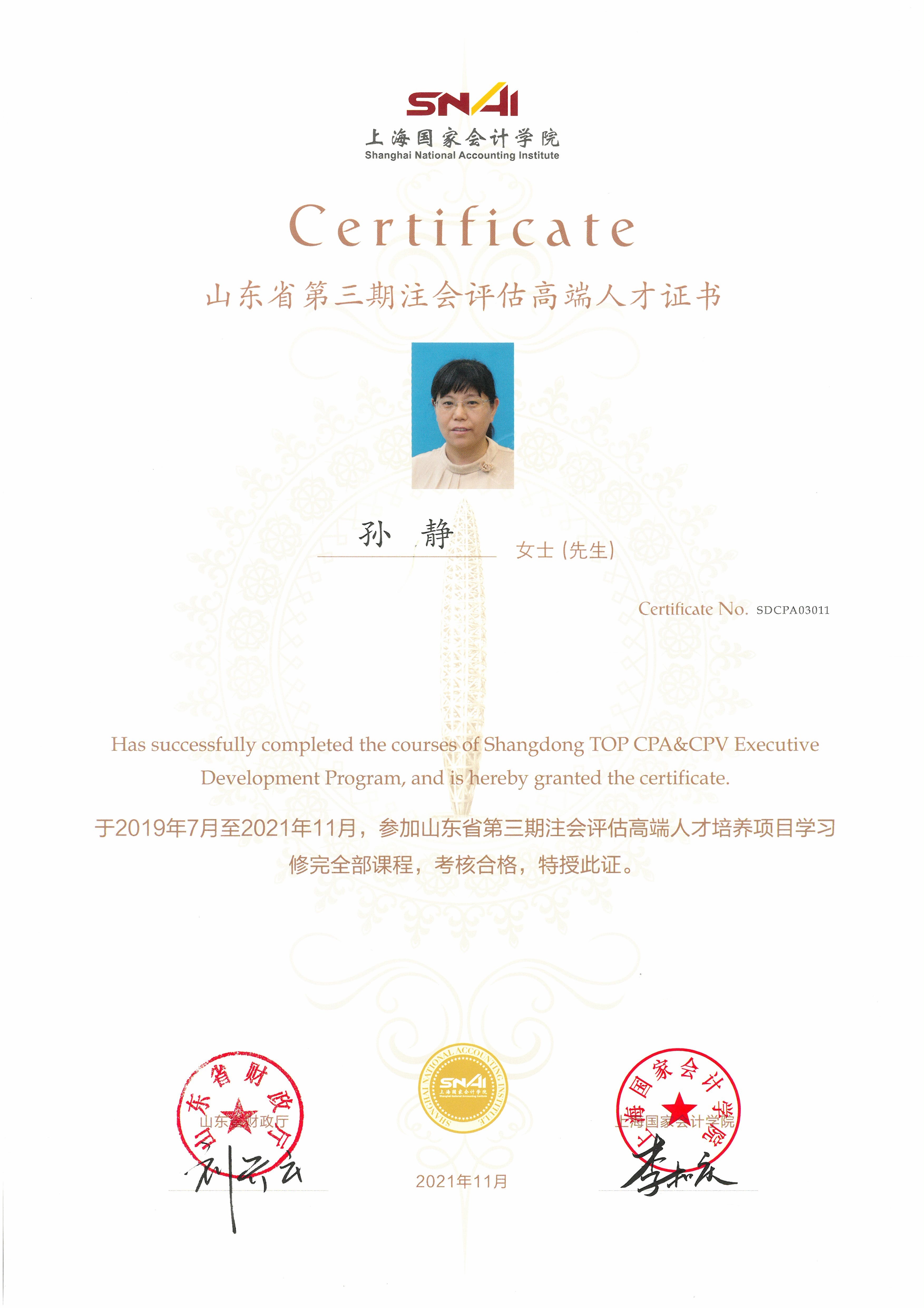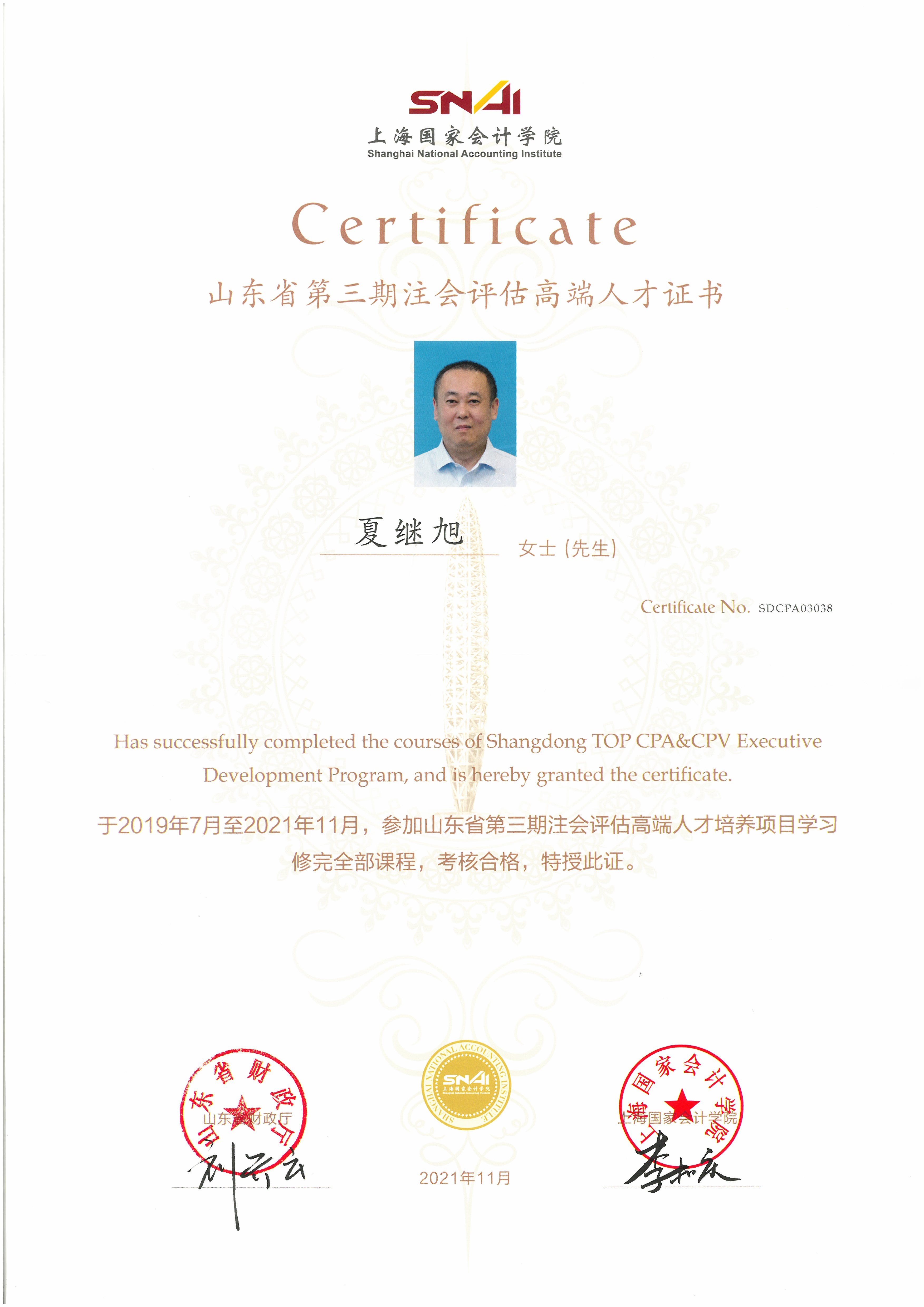 我事務(wù)所陳寶、夏繼旭、孫靜三名同志經(jīng)嚴(yán)格考核選拔為第三期高端人才培訓(xùn)人選,參加了為期三年的培訓(xùn),交出了一份出色的成績單,正式成為省高端人才,夏繼旭同志被評(píng)為優(yōu)秀學(xué)員。