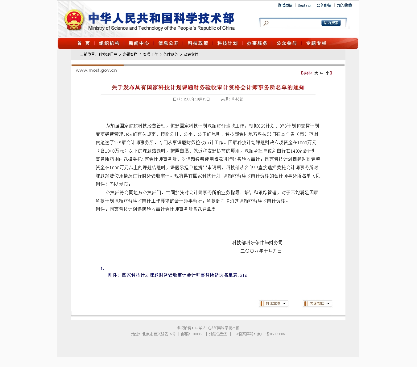 關(guān)于發(fā)布具有國家科技計劃課題財務(wù)驗收審計資格會計師事務(wù)所名單的通知